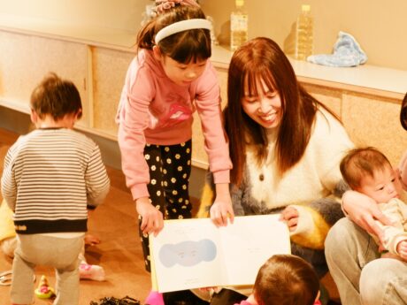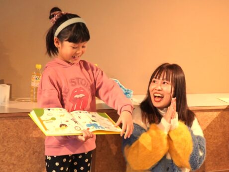 みんなに拍手してもらって最初は照れていたみゆちゃんでしたが、小さい子どもたちの目線に合わせて、とっても上手に読んでくれました。
