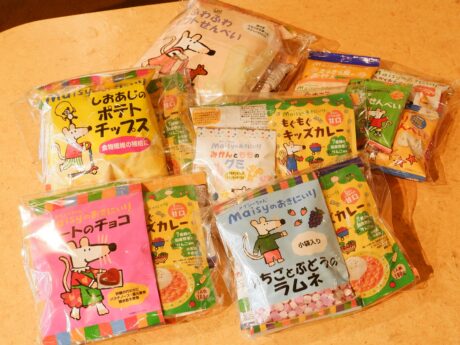 今回、イベント参加者のみなさんに、創健社さまからメイシーちゃんシリーズのお菓子をたくさんプレゼントしていただきました。
