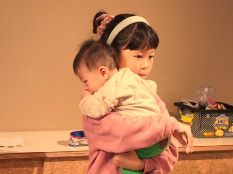 みゆちゃんが抱っこしたとたんに泣き止むこうしくん。